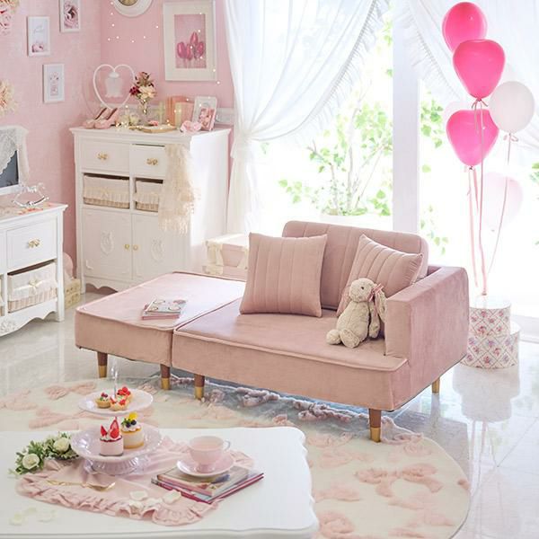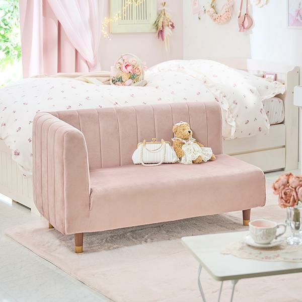 1番人気のガーリーデザインのソファです。シェル型やリボン型、曲線調の背もたれなどシェイプが特徴的なものをたくさん取り揃えています!色合いもピンクやアイボリーが多く、王道ピンクホワイトのインテリアにとっても似合います♥