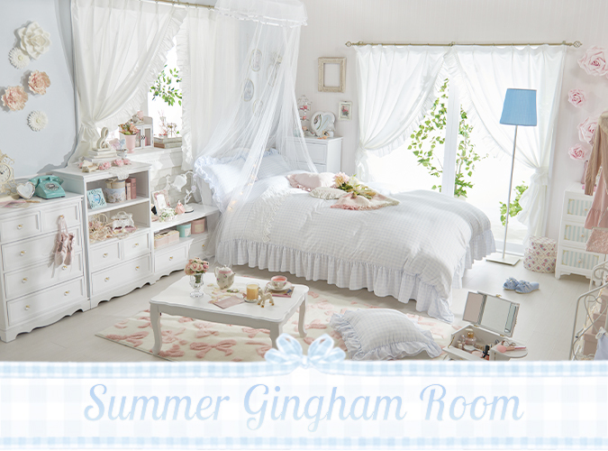 コーディネイト例:ブルーギンガムが爽やかな夏を感じさせるサマーギンガムルーム