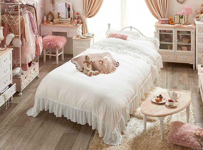 ベッドはお部屋の中でも大きな家具ですので、ベッドカバーを替えてあげることでお部屋の印象が大きく変わります♪フリルやレース、リボンがたっぷりあしらわれたデザインのかわいいベッドカバーは、お部屋の主役のベッドをよりかわいく飾ってくれます。