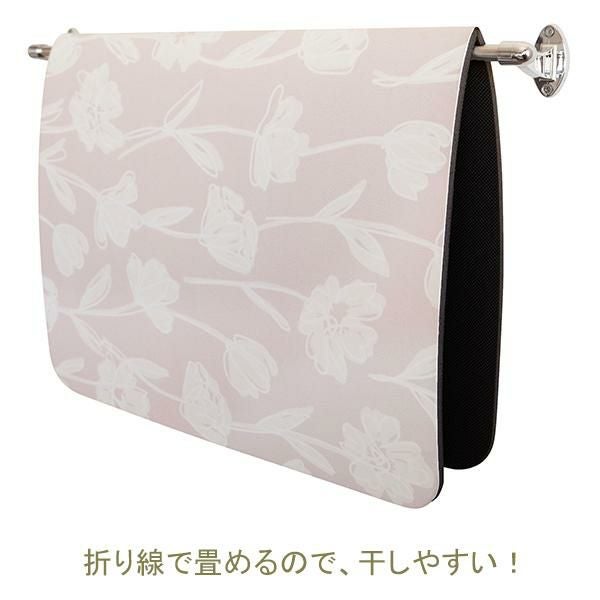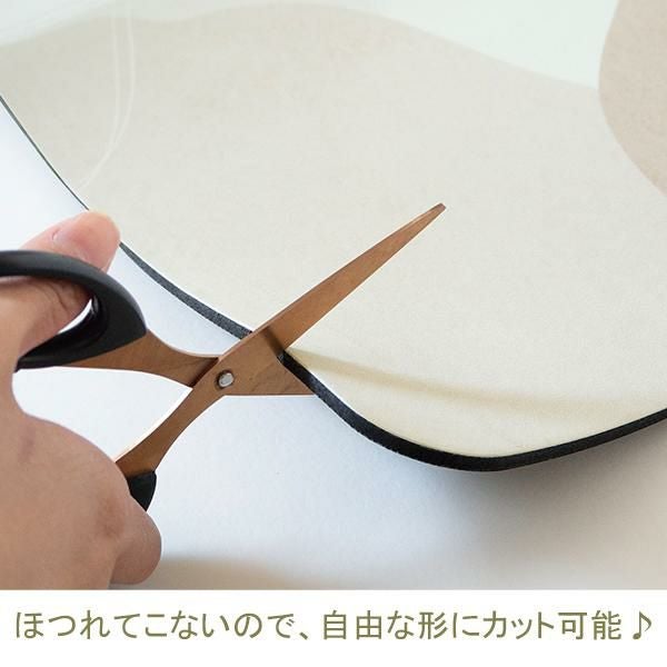 ほつれないので、自由な形にカットできます。中央に折れ線が付いているので、お風呂場でサッと流して干しやすくなっています。