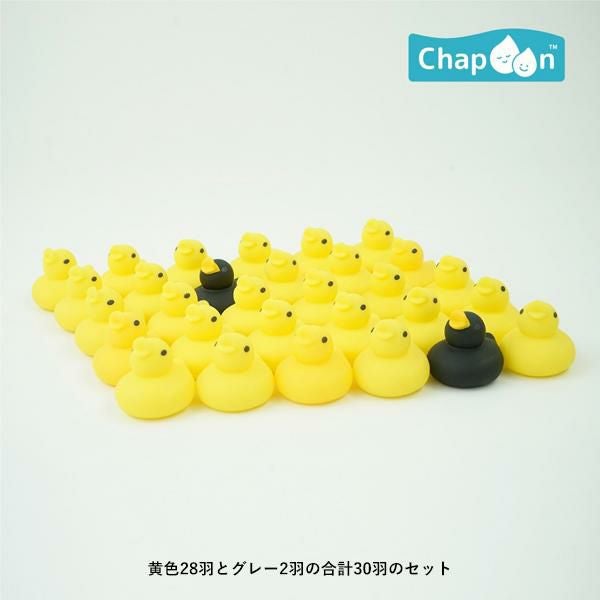 黄色のあひる28羽と、黒色のあひる2羽の合計30羽のあひるセットです。