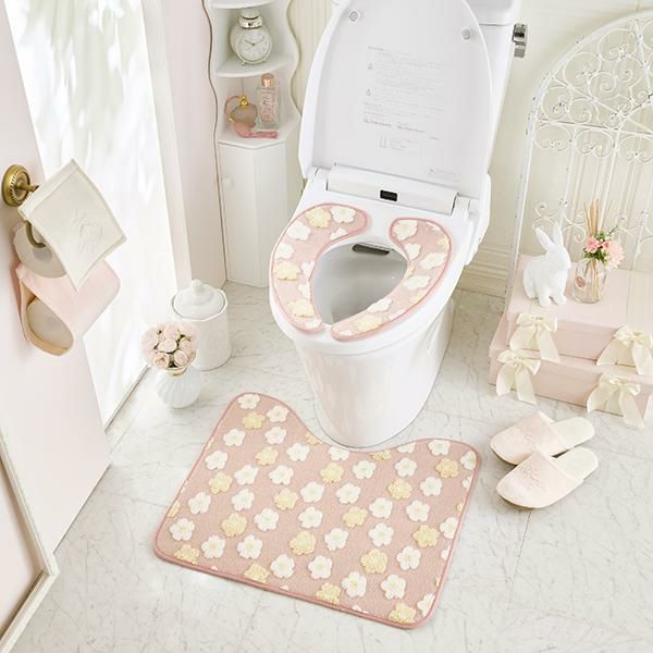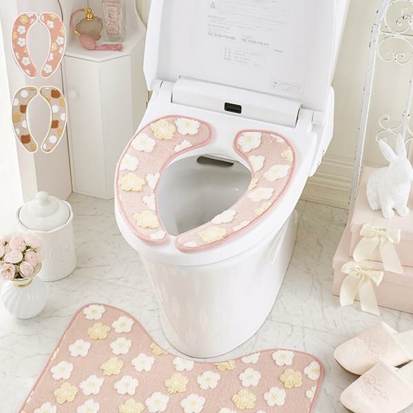 ふんわり柔らかな肌触りの可愛い便座シート。もこもこ生地でポコポコと立体的に柄を表現しました。フラワーとくまの優しい温かみのある2柄から選んでいただけます。