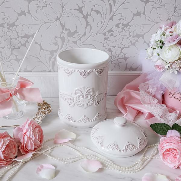 アンティーク風のデザインが印象的な、大人可愛いサニタリーポットです。