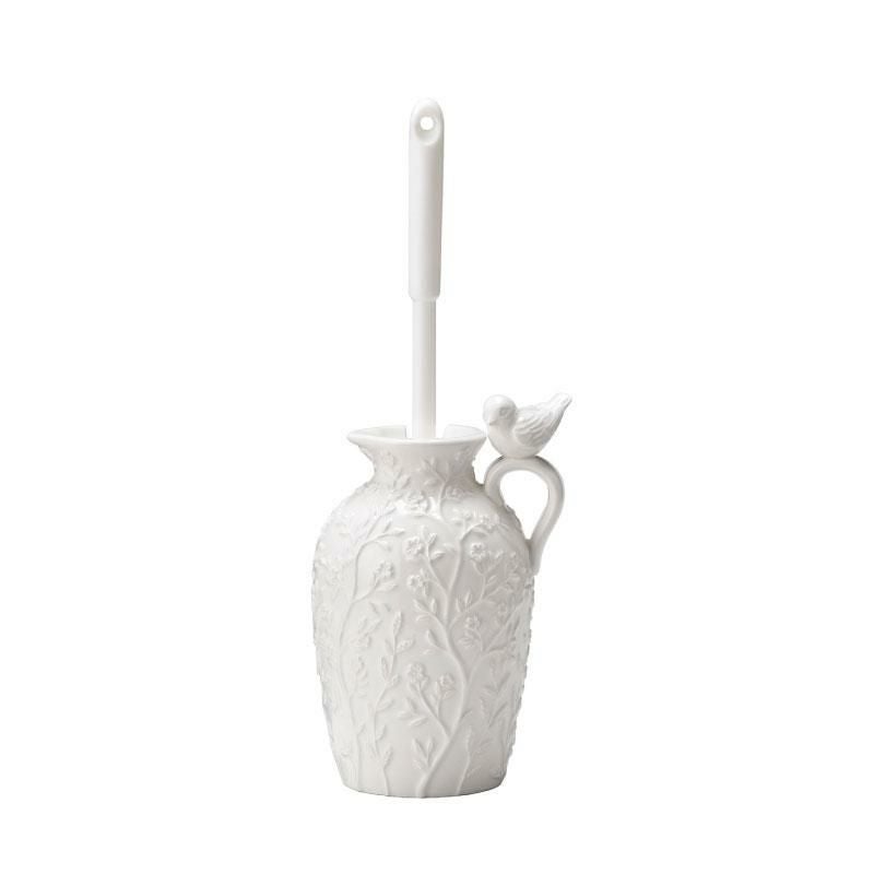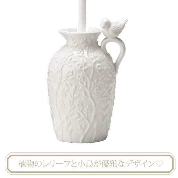 植物のレリーフと小鳥がポイントのトイレブラシ。