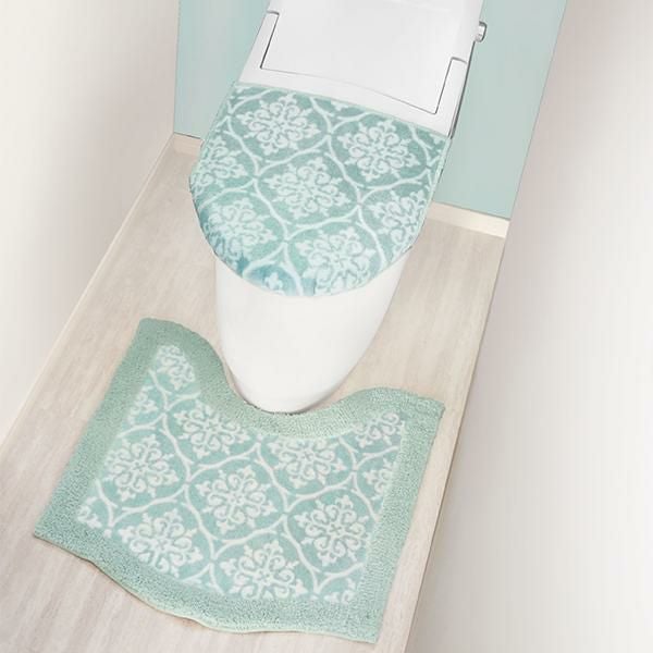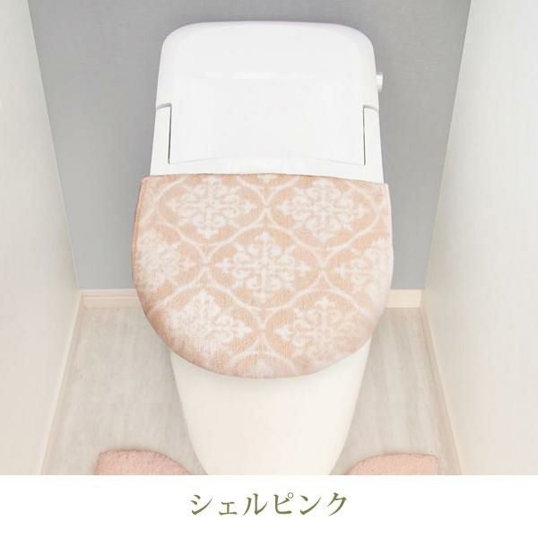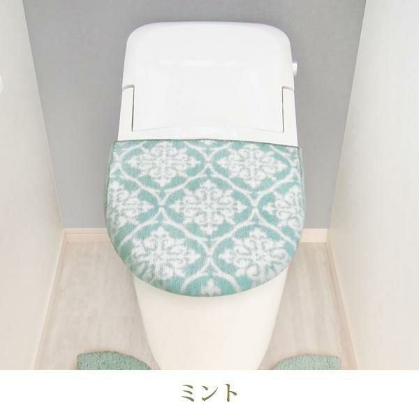 くすんだ淡いカラーに癒される、タイル柄が上品な兼用トイレフタカバー。
