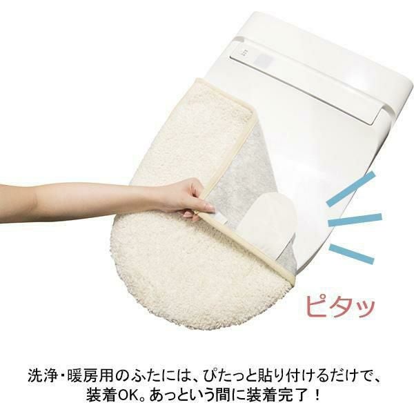 裏面に縫製された粘着シートにより、洗浄・暖房用/U・O型どの型にも対応。おうちのトイレを簡単にイメージチェンジ。