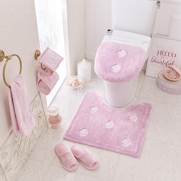 エンブレム(紋章)をイメージした、刺繍とラインストーンの輝きが美しいトイレタリーシリーズ。光沢感のある細めの糸をミックスで使用し、高級感のあるエレガントな空間を演出。