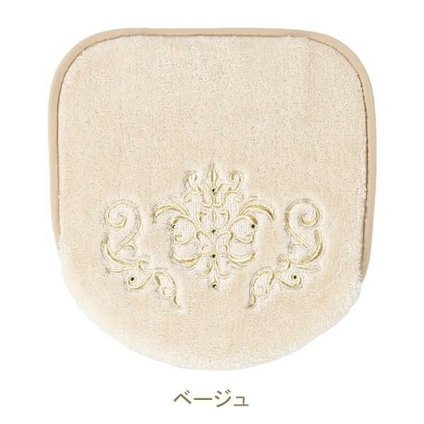 上質に輝く装飾が、王室の高貴な空間へ誘う、優美な宮殿のサロンをイメージしたシリーズ。落ち着きと気品を感じる煌びやかな装飾柄に、さりげなく輝くラインストーンが魅力的な兼用フタカバーです。光沢のある糸を使用し、見る角度によってニュアンスのあるやわらかな表情を見せてくれます。普通便座&温水洗浄・暖房便座兼用でご使用いただけます。シリーズでのコーディネートでラグジュアリーなトイレ空間作りが叶います。