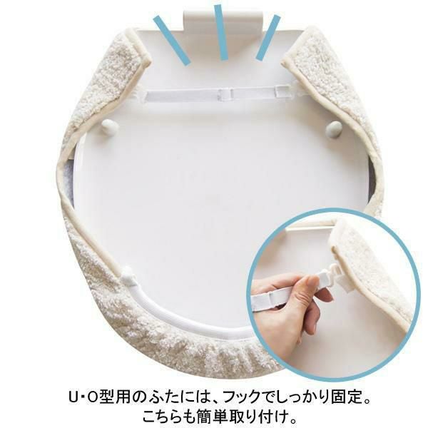 ふんわりと柔らかい肌触りの糸を使用した、フタカバーは裏面に縫製された粘着シートにより、洗浄・暖房用/U・O型どの型にも対応。