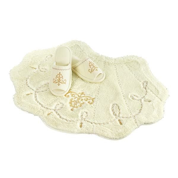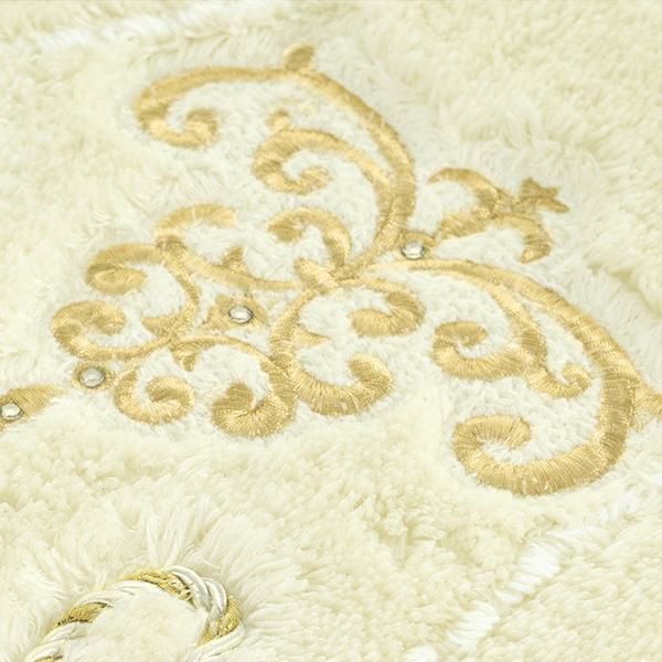 フタカバー、マット、ホルダーカバー、スリッパは、上品な光沢糸をベースに、ラメ糸がミックスされたツイストコードを装飾することで柔らかさをプラス。