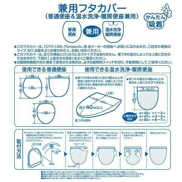 フタカバーは普通便座&温水洗浄・暖房便座兼用使用可能。