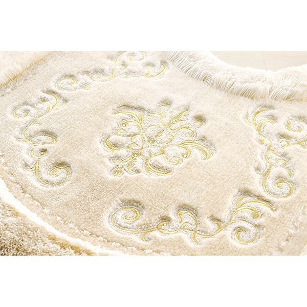 フタカバー、マット、ホルダーカバー、スリッパは、落ち着きと気品を感じる煌びやかな装飾柄に、さりげなく輝くラインストーンが魅力的。