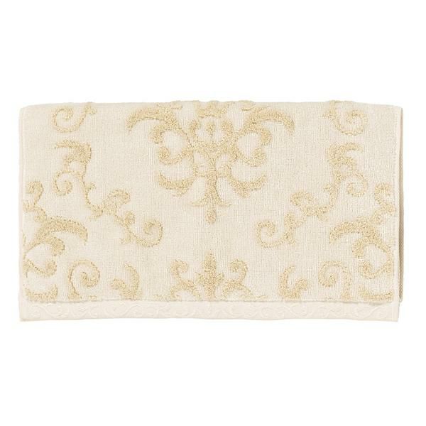 ハンドタオルはやわらかな無撚糸が気持ち良く、つやのあるシャーリングで表現されたエレガントな装飾柄が印象的で1枚でも主役に。