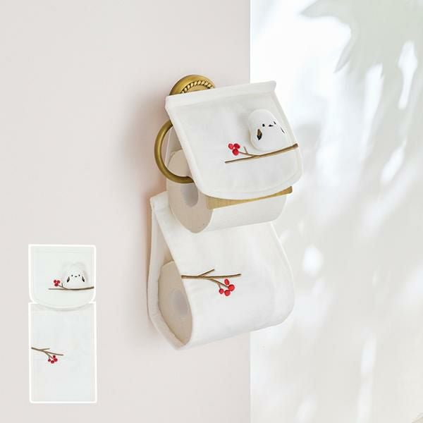 ふわふわふっくらなシマエナガ姉弟に、心がほっこり癒されるペーパーホルダーカバー。触り心地の良いベロア調の生地にマスコットのシマエナガが枝に止まった可愛いデザイン。トイレットペーパーが1個収納出来ます。