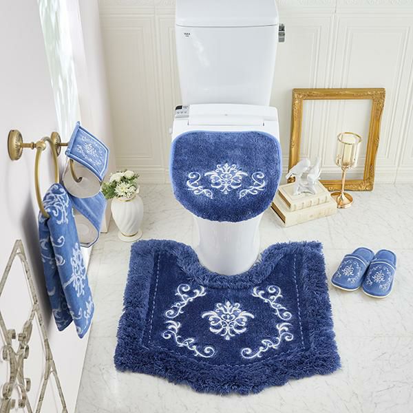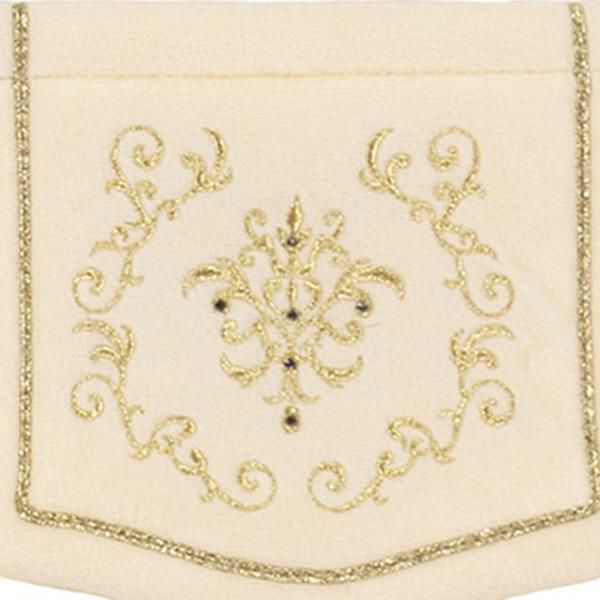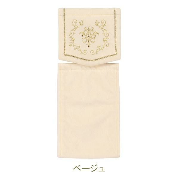 上質に輝く装飾が、王室の高貴な空間へ誘う、優美な宮殿のサロンをイメージしたシリーズ。緩やかなフォルムがエレガントなペーパーホルダーカバーです。なめらかな生地に品のある装飾柄の刺繍。さりげなく散りばめられたラインストーンが上品な輝きを見せてくれます。シリーズでのコーディネートでラグジュアリーなトイレ空間作りが叶います。