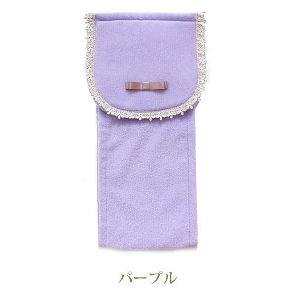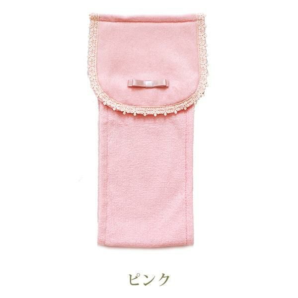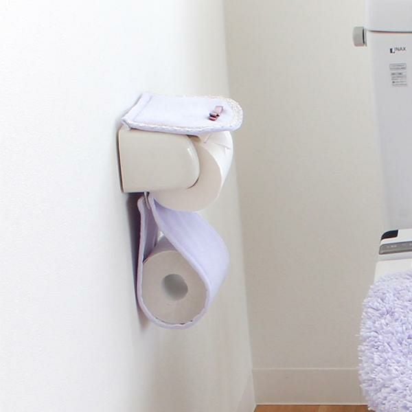 カバー上部のちょこんとリボンがかわいいホルダーカバー。それぞれのカラーに合わせ、上品なサテンのリボンと、縁には花のモチーフのレースをあしらいました。可愛く飾りながら、ペーパーホルダーのフラップ部分をホコリから守ります。落ち着いたスモーキーパステルカラーを基調とし、ふんわり優しいピンクと、上品で綺麗なパープル、きれいめカジュアルなベージュの3色展開。成形部品を外して、カバー部分は手軽にお洗濯していただけます。