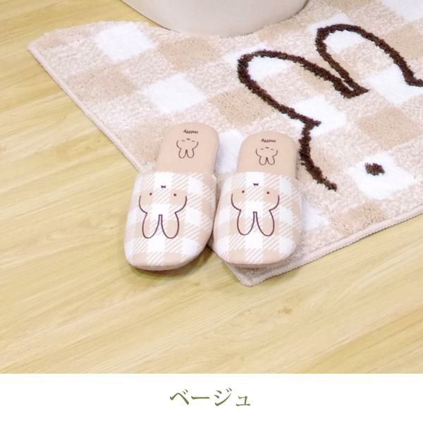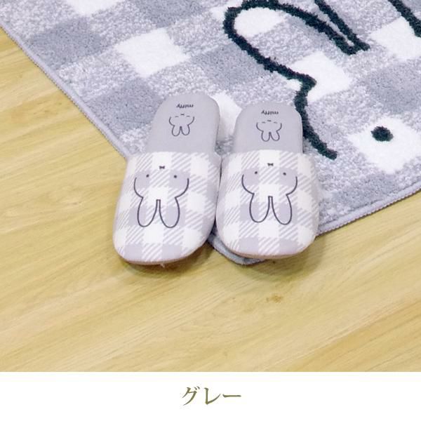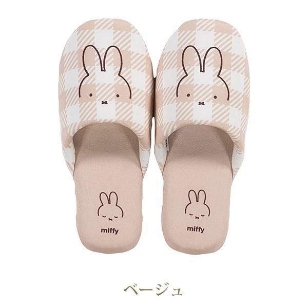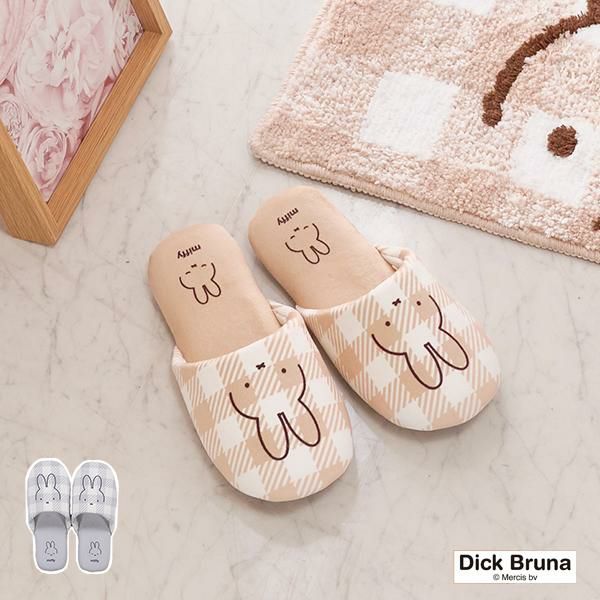 かわいいミッフィーを全面にデザインした、シンプルでおしゃれ感のあるスリッパ。爽やかなギンガムチェックと合わせて少し大人っぽい印象に。「チェックライン」シリーズで揃えてトレイ空間を可愛くイメージチェンジ♪もちろんルームスリッパとしても使用できます。