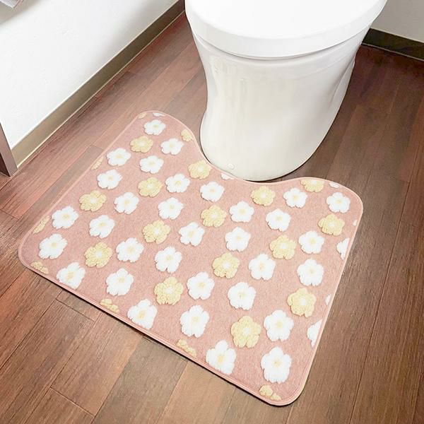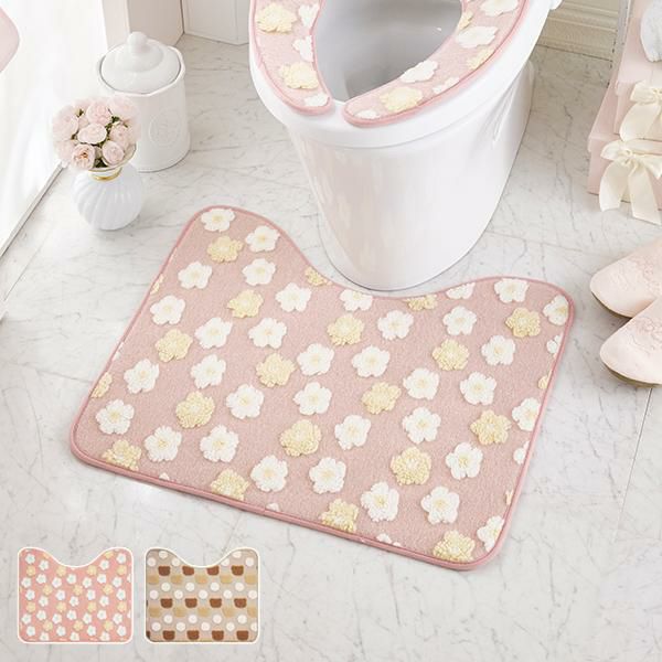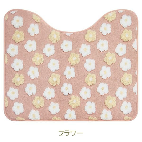 ふんわり柔らかな肌触りの可愛いトイレマット。もこもこ生地でポコポコと立体的に柄を表現しました。フラワーとくまの優しい温かみのある2柄から選んでいただけます。