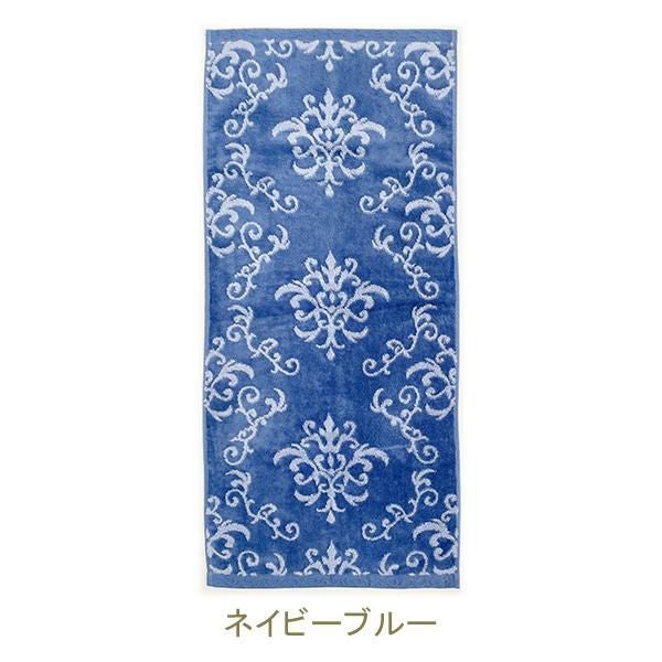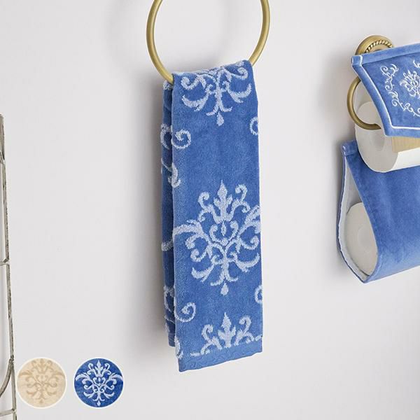 上質に輝く装飾が、王室の高貴な空間へ誘う、優美な宮殿のサロンをイメージしたシリーズ。やわらかな無撚糸が気持ちいい綿100%の日本製ハンドタオルです。つやのあるシャーリングで表現されたエレガントな装飾柄が印象的で1枚でも主役に。