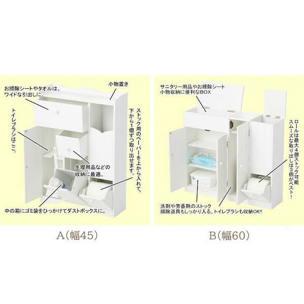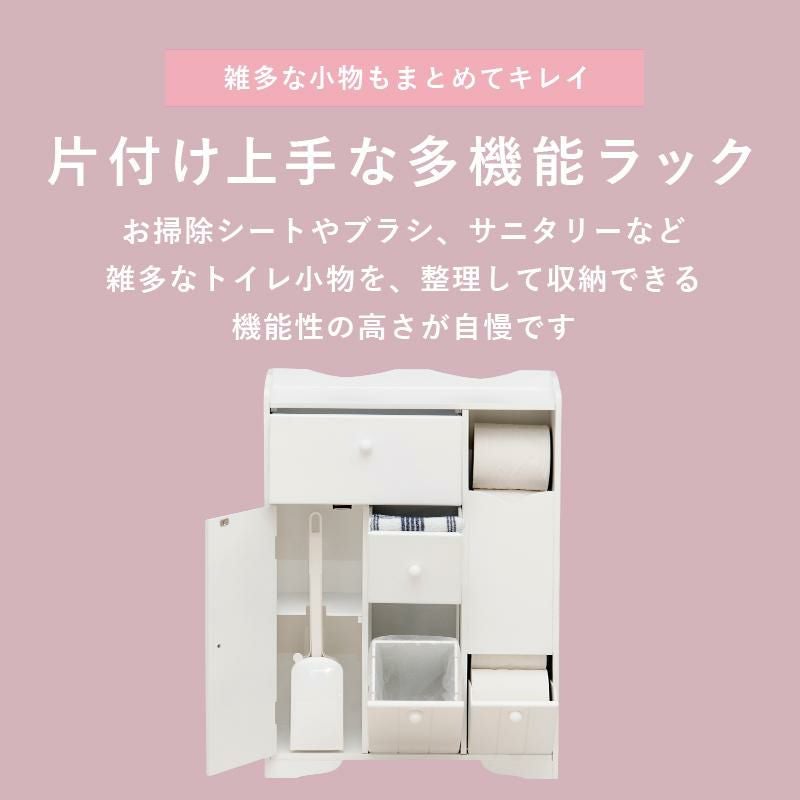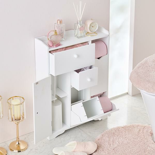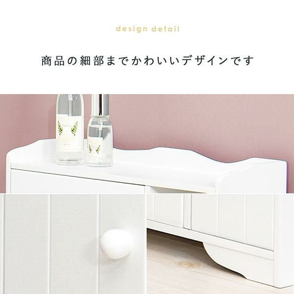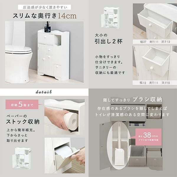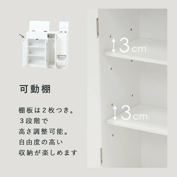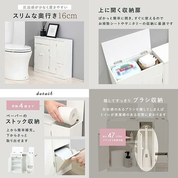 清潔感のあるホワイトカラーがトイレ空間を明るく爽やかな印象にしてくれます。薄型に作られているため、省スペースなのに小物をまとめて収納できます。