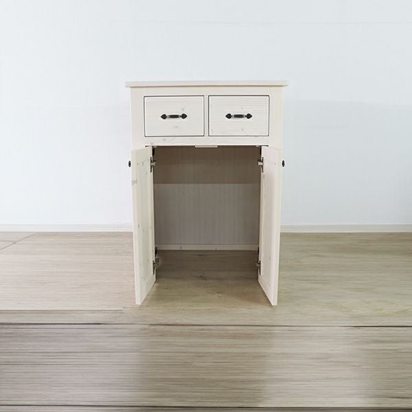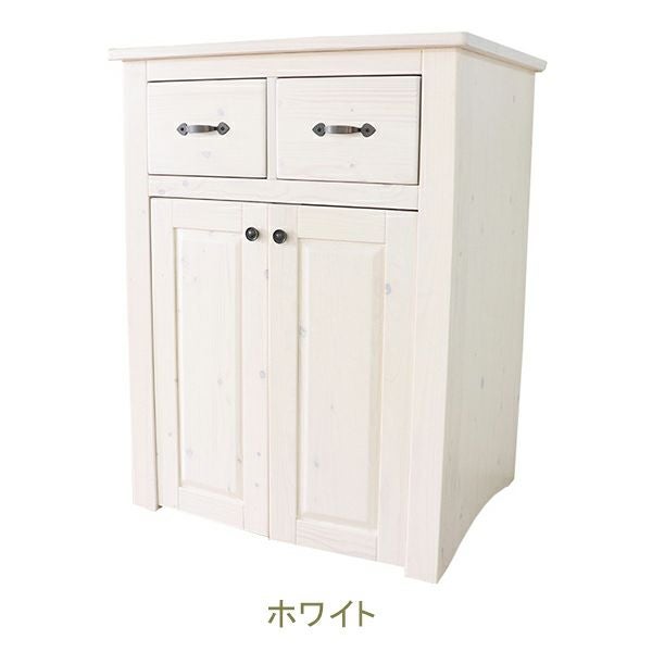 クラシカルなデザインと北欧パインの質感がナチュラルで上品なムードのペットトイレ収納。
