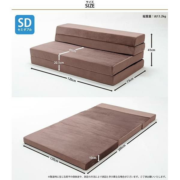 ソファとしてもマットレスとしても使える、折りたたみ可能なソファマットレス(セミダブル)
