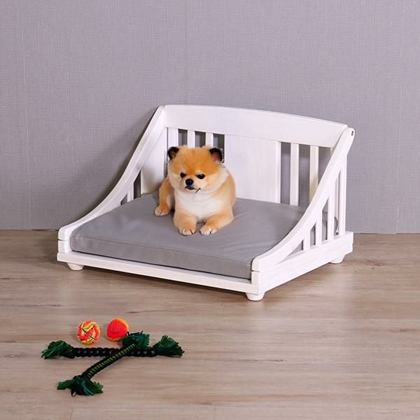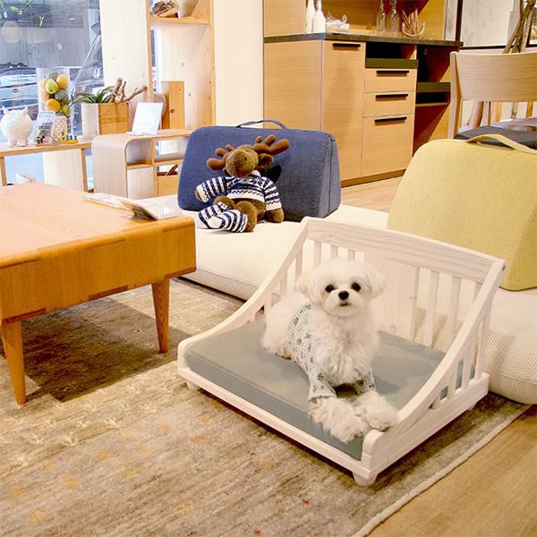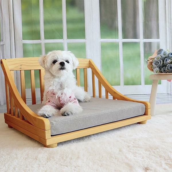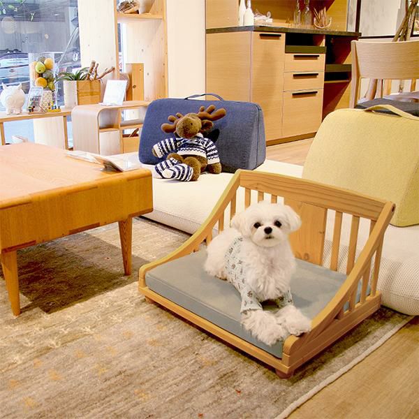 クラシカルなデザインと北欧パインの質感がナチュラルで上品なムードのペットベッド(Sサイズ)。