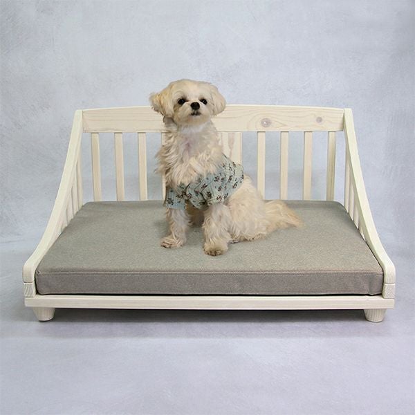 クラシカルなデザインと北欧パインの質感がナチュラルで上品なムードのペットベッド(Mサイズ)。