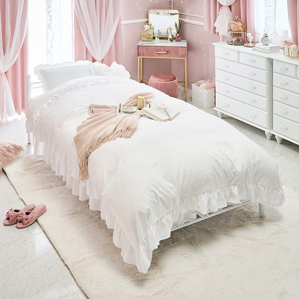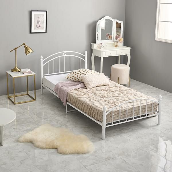 シンプルだけど、ちゃんとかわいい。白色フレームのかわいらしいベッド♪