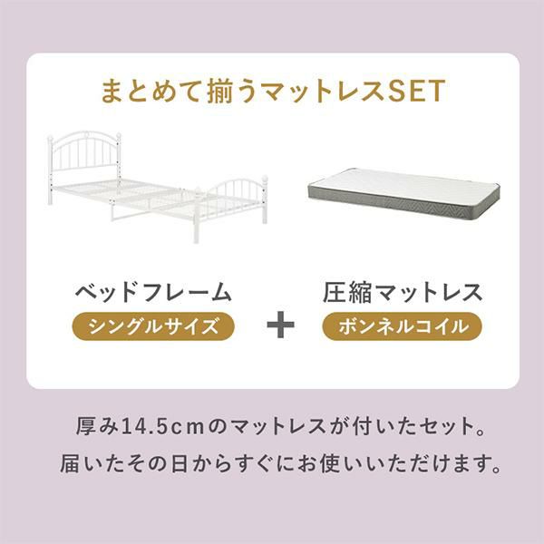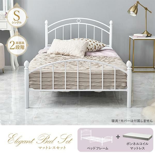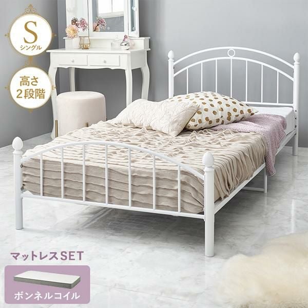 シンプルだけど、ちゃんとかわいい。ホワイトフレームアイアンベッドとボンネルコイルマットレスの2点セット♪