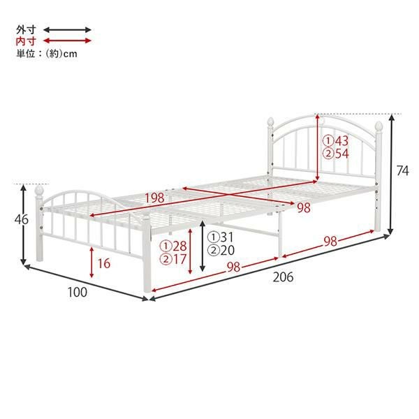 〔ベッド本体〕約 幅100・奥行206・高さ74・床面高31/20cm
