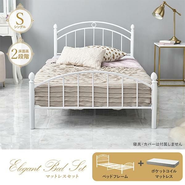シンプルだけど、ちゃんとかわいい。ホワイトフレームアイアンベッドとポケットコイルマットレスの2点セット♪