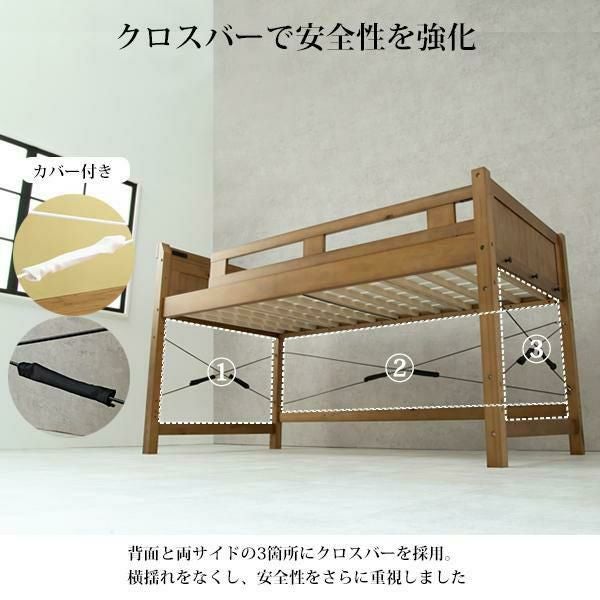 ベッド下を収納や住空間として活用できるロフトタイプ。木製ならではのぬくもりを感じられる頑丈なすのこベッドです。