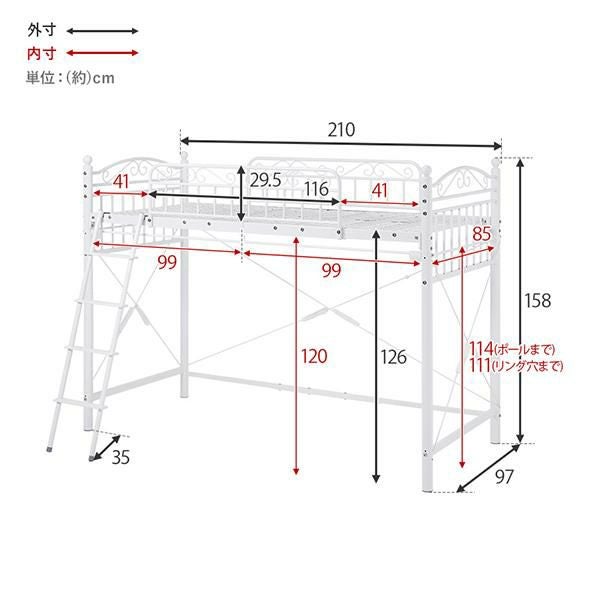 ロフトベッド時:(約)幅97×長さ210×高さ158cm