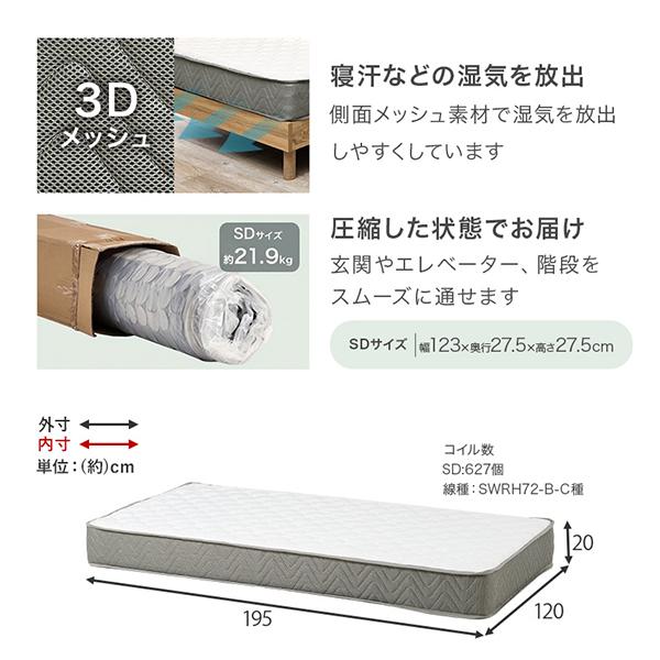 【直送】ファブリックベッド/スクエア(セミダブル・ポケットコイルマットレス付き)