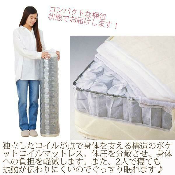 ・付属のマットレスはポケットコイルを使用し、お部屋に搬入しやすいように圧縮した状態でお届けいたします。