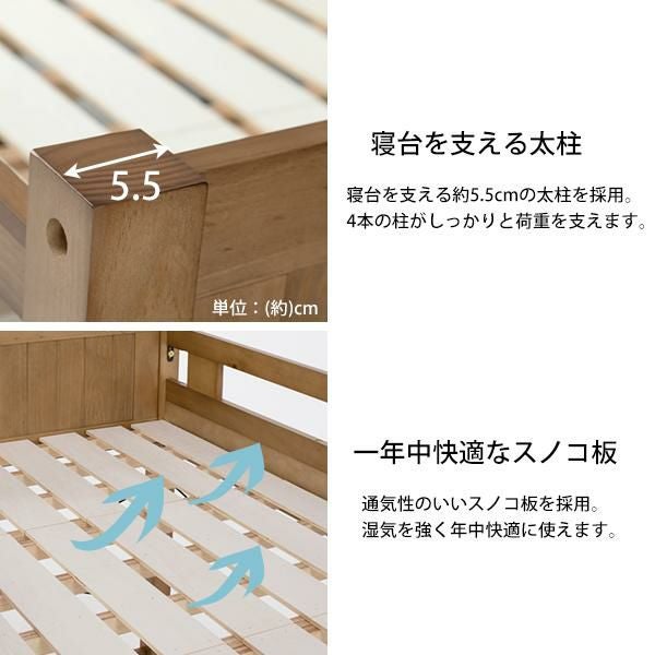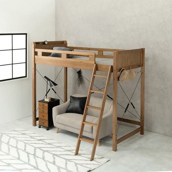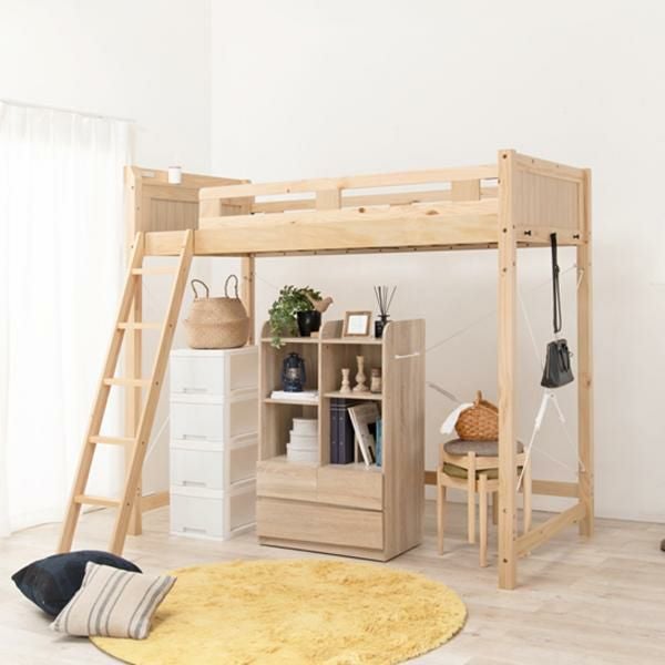 ベッド下を収納や住空間として活用できるロフトタイプ。木製ならではのぬくもりを感じられる頑丈なすのこベッドです。