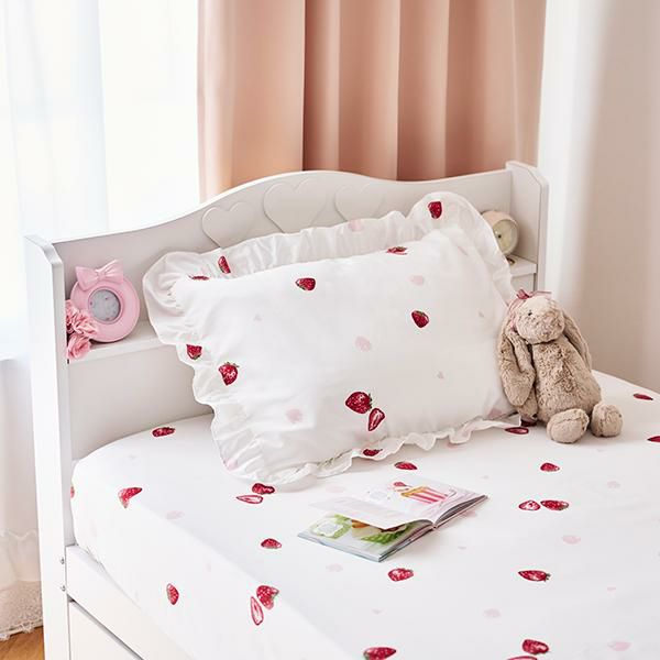 緩やかな曲線のヘッドボードに3つのラブリーなハート装飾をあしらった可愛い収納付きベッド。