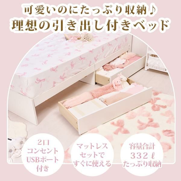 1人暮らしにオススメ!可愛いのに、たっぷり収納も叶うマットレス付きベッド♪