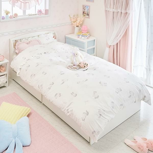 1人暮らしにオススメ!たっぷり収納も叶うマットレス付きベッドに、可愛いカバーリングがセットになりました♪