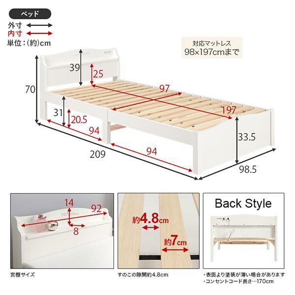 【直送】簡単組み立てコンセント付きベッド(シングル)