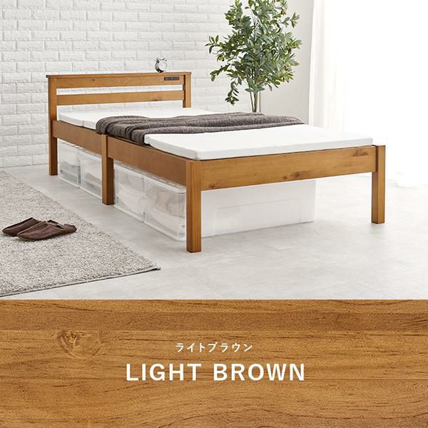 ネジなし、工具不要で簡単組立。コンセント2口の宮棚が付いたシンプルデザインのシングルベッド