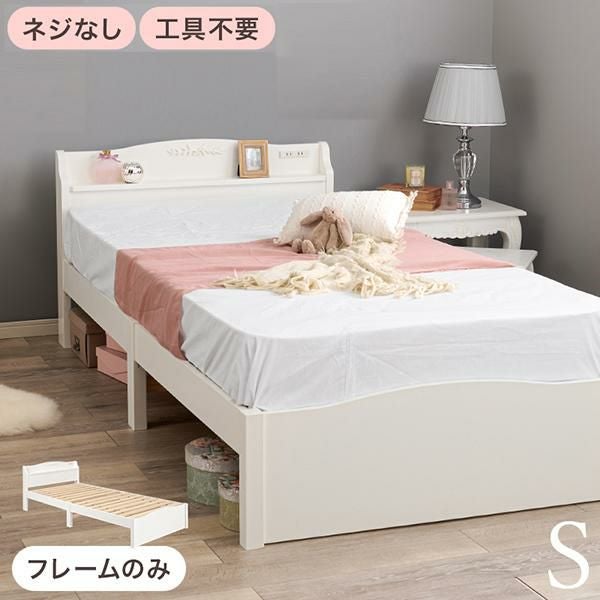 ネジなし、工具不要で組み立てが初めてでも安心!可愛いベッドでの眠りが叶う宮棚付きベッド♪