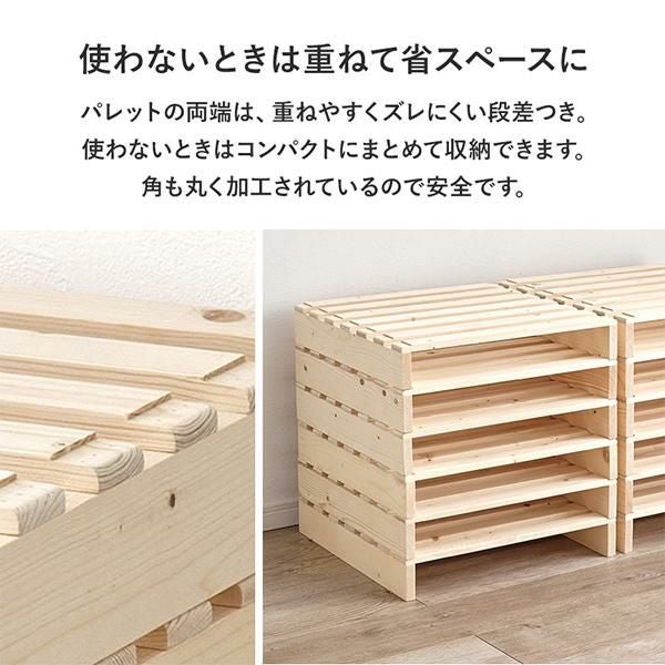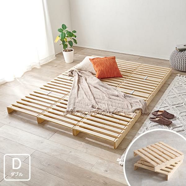 ナチュラルな風合いが魅力のダブルサイズのすのこベッド。フィンランド産の100%天然パイン材を使用しました。年輪の幅が狭く、美しい木目が特徴のパイン材は、自然そのままのぬくもりを感じさせてくれます。