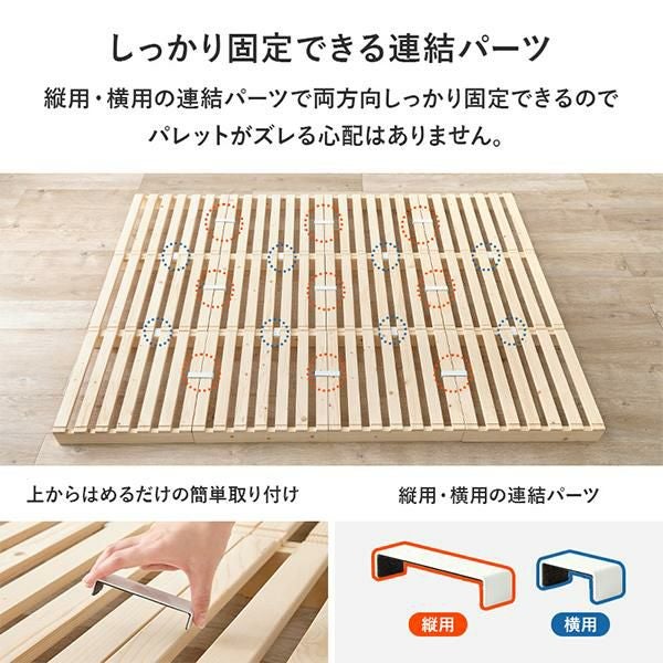 どんなお部屋にも馴染む、シンプルでナチュラルなロースタイルのベッドは、パレット状のすのこ板を並べるだけで設置できるので組み立ても簡単。模様替えやお引越しの際にもサッと移動できて、暮らしに寄り添います。