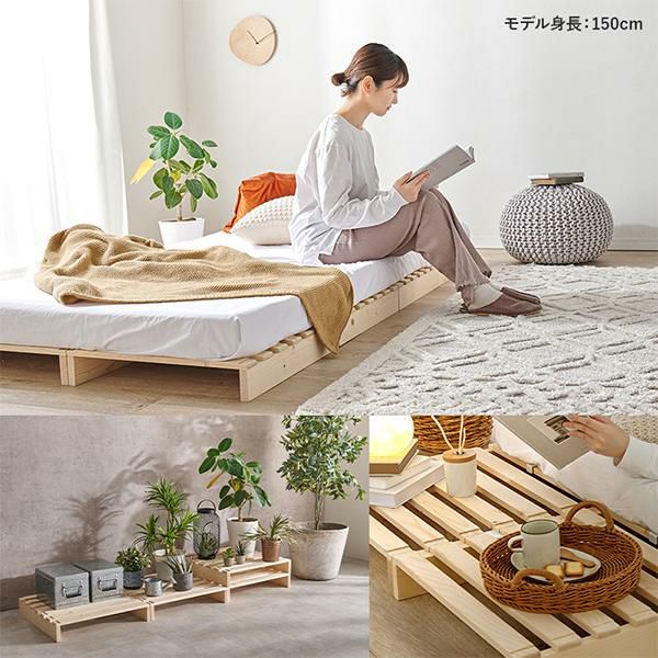 ベッドの形にとらわれない自由なスタイルで、お部屋を広く見せたい方やインテリアを楽しみたい方にもぴったり。通気性に優れたすのこ仕様で、オールシーズン快適にお使いいただけます。
