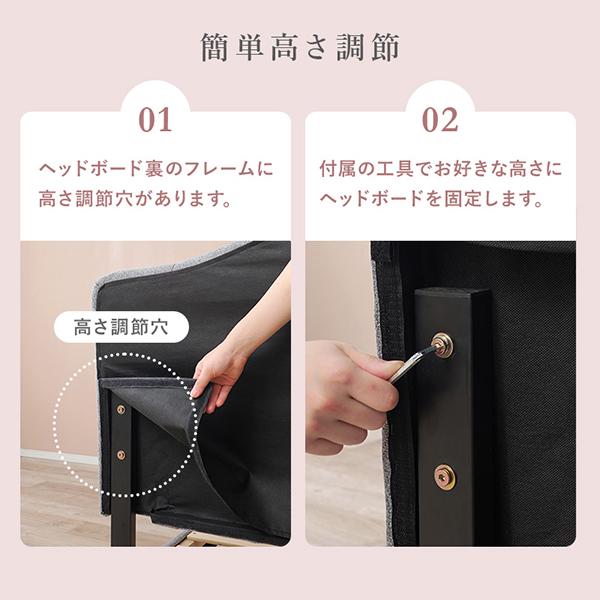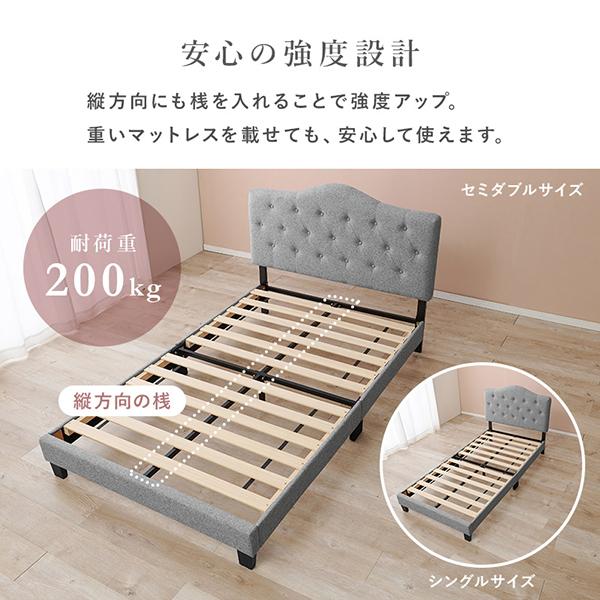 お部屋の主役になる、王冠(クラウン)モチーフのヘッドボード。緩やかなカーブを描くクラウン型のヘッドには、贅沢なボタン留めとステッチをあしらい、華やかさの中にも気品が漂うデザインに仕上げました。肌触りの良い柔らかなファブリック張りなので、寝る前の読書やティータイムには背もたれとしてゆったりと体を預けることができます。お部屋を可愛く彩るだけでなく、床面には通気性に優れた「すのこ」を採用することで機能性にもこだわりました。湿気を溜め込まず、大切な眠りの時間を一年中さらりと快適にサポートします。