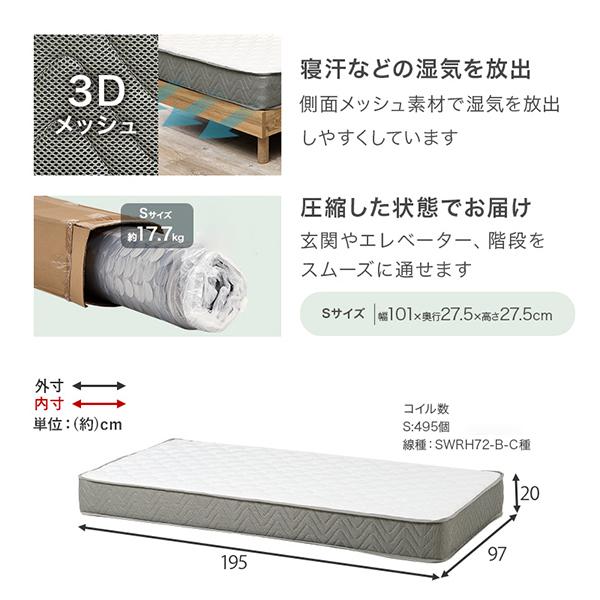 マットレス:ポケットコイル、張地:ポリエステル