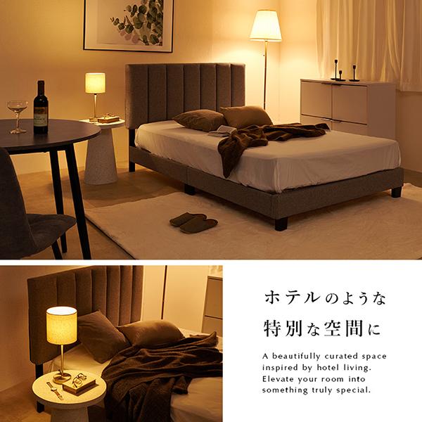 お部屋の主役になる、クラシカルなスクエアフォルムのヘッドボード。洗練された直線美が際立つスクエア型のヘッドには、シンプルながらも美しいキルティングをあしらい、華やかさの中にも落ち着いた気品が漂うデザインに仕上げました。肌触りの良い柔らかなファブリック張りなので、寝る前の読書やティータイムには背もたれとしてゆったりと体を預けることができます。床面には通気性に優れた「すのこ」を採用することで機能性にもこだわりました。湿気を溜め込まず、大切な眠りの時間を一年中さらりと快適にサポートします。こちらはベッド本体に、体圧を分散させる「ポケットコイルマットレス」をセットでお届け。一つひとつ独立したコイルが体のラインに沿って沈み込み、理想の寝姿勢をキープしてくれるので、朝までぐっすり心地よい眠りを誘います。フレームに合わせた専用サイズのマットレスをセットにしているため、サイズ選びの手間がなく、設置後すぐにご使用いただけます。無駄のない洗練されたデザインは、どんなインテリアとも相性がよく、寝室をワンランク上の上質でおしゃれな空間に。