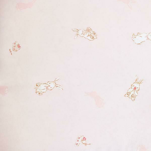 ふわふわ毛並みのウサギにスイーツがガーリーな布団カバーセットは、淡く少しだけコーラル寄りピンクのグランドカラーに、ポーズにこだわった5羽のうさぎをお菓子と一緒に描きました。掛けカバーの衿元とピローケースの周囲にはたっぷりとしたフリルをあしらい、可愛いらしさをプラス。ベッドシーツはボックスタイプなのでベッドの高さを選ばずにご使用いただけます。裏側は表地同色の淡い無地のピンクカラーで少し落ち着いた印象に仕上げました。